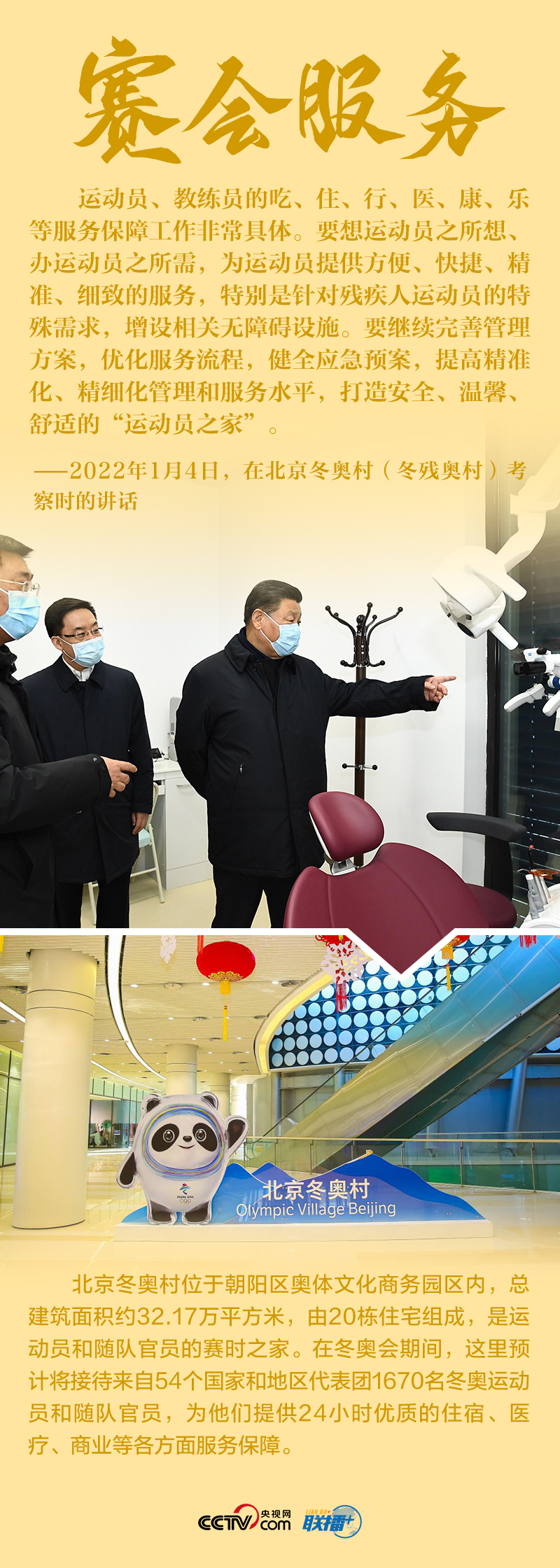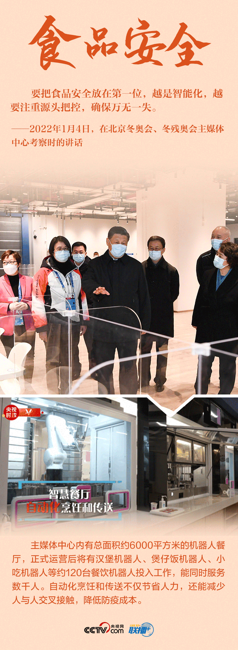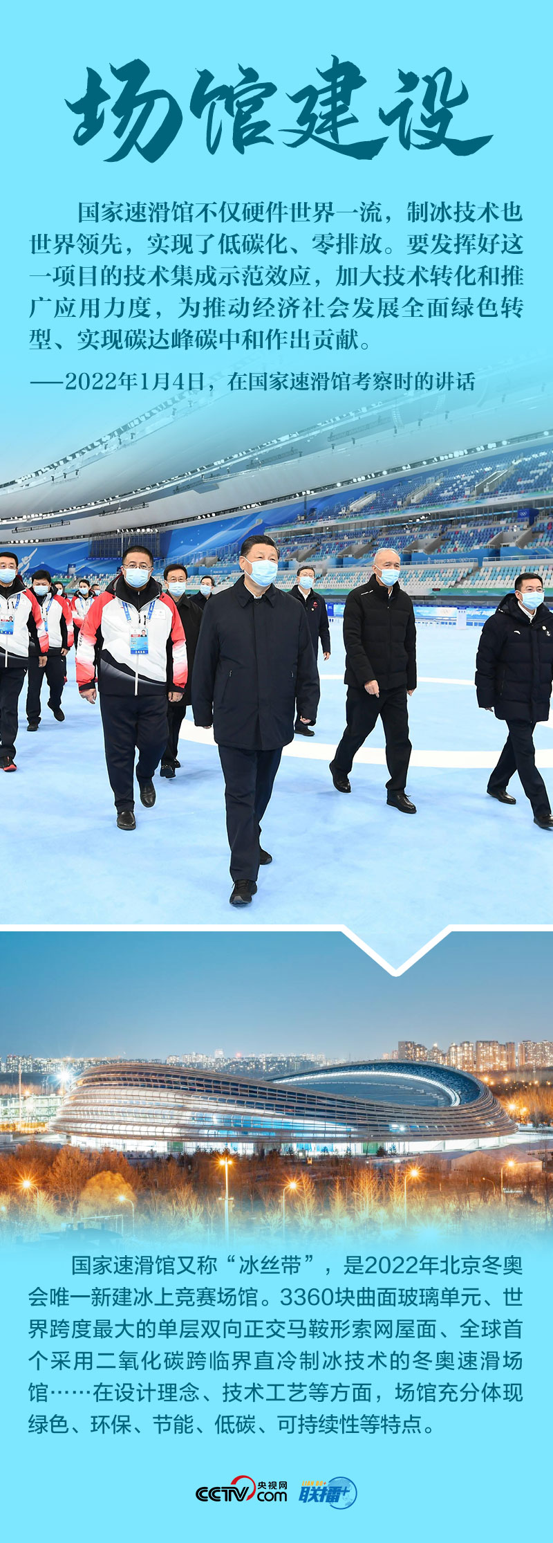 聯(lián)播+“今天是元旦后上班第一天,我來專題調(diào)研北京冬奧會(huì)、冬殘奧會(huì)籌備工作,主要是來給大家鼓勁加油?!?月4日,北京冬奧會(huì)開幕倒計(jì)時(shí)一個(gè)月之際,習(xí)近平總書記在北京深入體育場(chǎng)館、媒體中心、訓(xùn)練基地等,實(shí)地了解2022年冬奧會(huì)、冬殘奧會(huì)籌辦備賽情況。