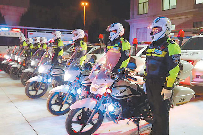 蘭州市公安局民警整裝待發(fā),開展街面巡邏。資料圖片由省公安廳提供