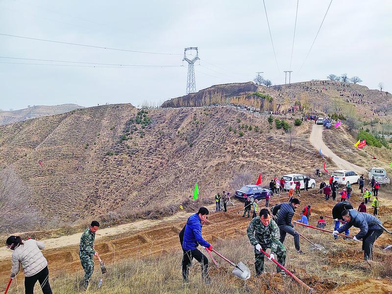 方山鄉(xiāng)干部群眾開展全民義務(wù)植樹活動。