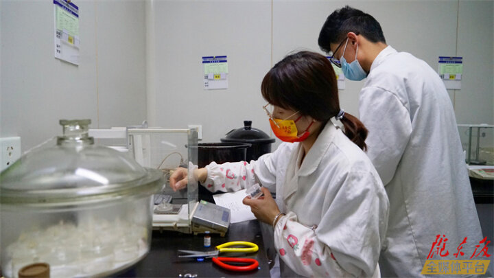 工作人員對藥品配方材料進(jìn)行稱重。