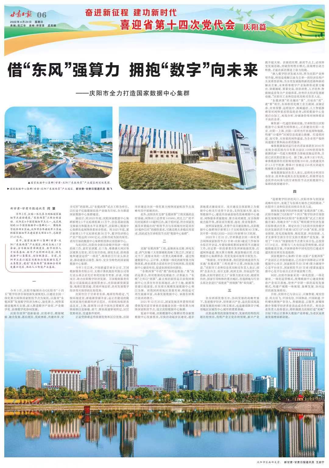 今年2月,全國(guó)一體化算力網(wǎng)絡(luò)國(guó)家樞紐節(jié)點(diǎn)啟動(dòng)建設(shè),“東數(shù)西算”工程全面啟動(dòng)。慶陽(yáng)是8個(gè)國(guó)家樞紐節(jié)點(diǎn)之一,也是規(guī)劃的10個(gè)國(guó)家數(shù)據(jù)中心集群之一。圍繞數(shù)字經(jīng)濟(jì)項(xiàng)目實(shí)施,慶陽(yáng)市今年謀劃開(kāi)工實(shí)施的國(guó)家樞紐節(jié)點(diǎn)建設(shè)重大項(xiàng)目8個(gè),總投資37.67億元。