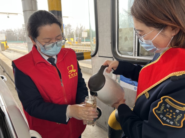 在三尺崗?fù)崆榉?wù)過往司乘人員,平?jīng)鰱|收費(fèi)站先從保障職工的生活開始。