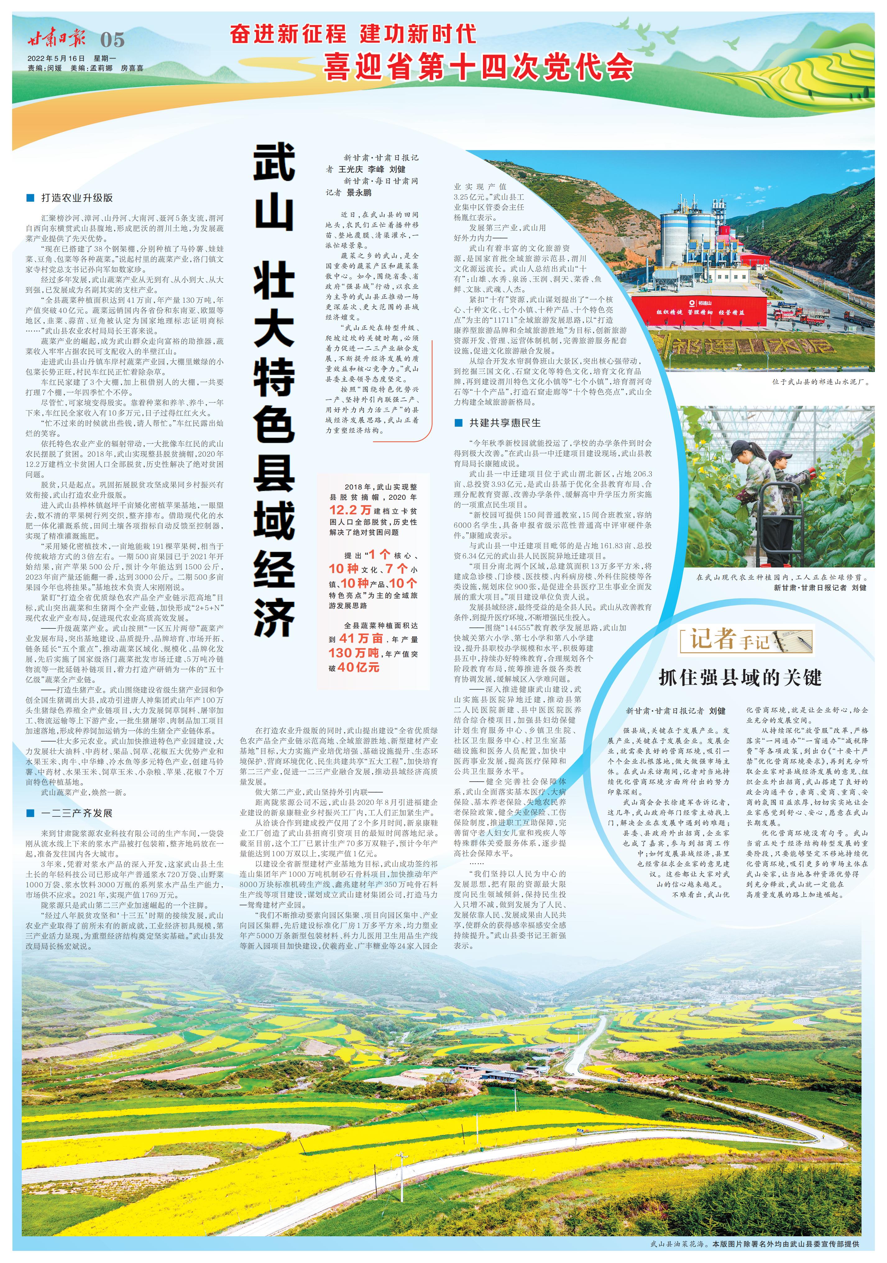 蔬菜之鄉(xiāng)的武山,是全國重要的蔬菜產區(qū)和蔬菜集散中心。如今,圍繞省委、省政府“強縣域”行動,以農業(yè)為主導的武山縣正推動一場更深層次、更大范圍的縣域經濟嬗變。
