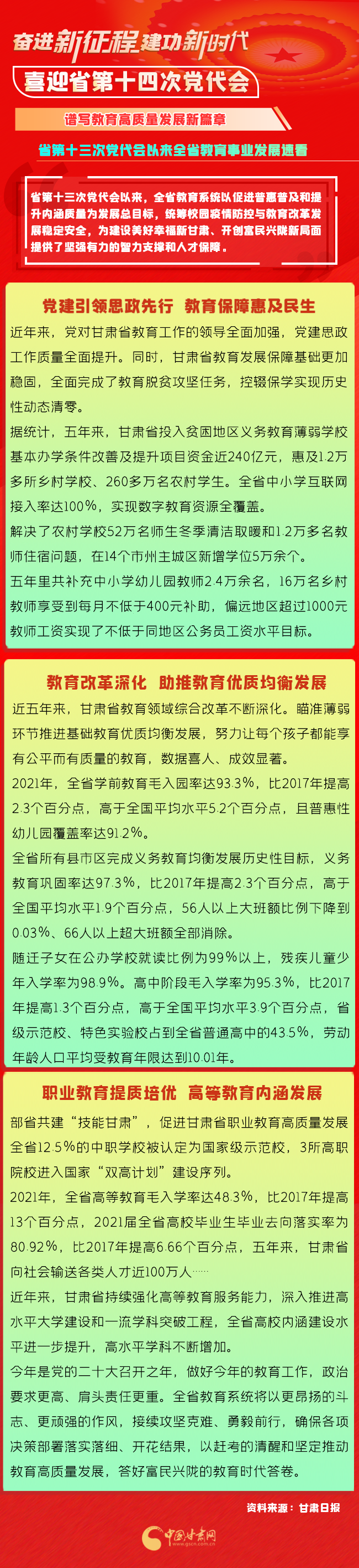 【奮進(jìn)新征程 建功新時(shí)代 喜迎省第十四次黨代會(huì)】甘肅:譜寫教育高質(zhì)量發(fā)展新篇章