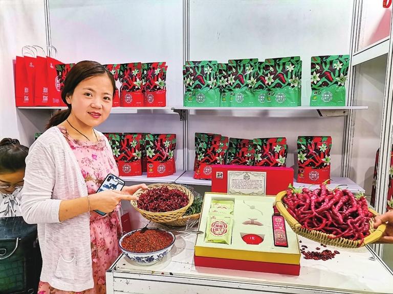 “甘味”農產(chǎn)品展銷館里,工作人員在推介甘谷辣椒。