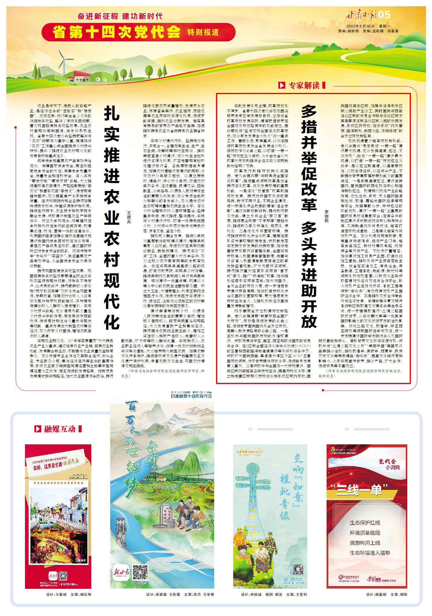 實(shí)踐發(fā)展永無止境,改革開放永不停步。省第十四次黨代會(huì)緊緊圍繞甘肅未來五年發(fā)展總目標(biāo),立足我省改革開放發(fā)展實(shí)際,精準(zhǔn)把握甘肅在全國對外開放格局中的功能定位,提出要抓好“堅(jiān)定不移全面深化改革開放,充分激發(fā)發(fā)展活力動(dòng)力”這一重點(diǎn)工作。著眼長遠(yuǎn)、聚焦重點(diǎn),以縱深推進(jìn)改革開放激發(fā)全省發(fā)展活力動(dòng)力,將開放作為必由之路,以打造“一帶一路”開放樞紐為目標(biāo),為今后我省以大改革大開放助推綜合經(jīng)濟(jì)實(shí)力實(shí)現(xiàn)新躍升指明了方向。