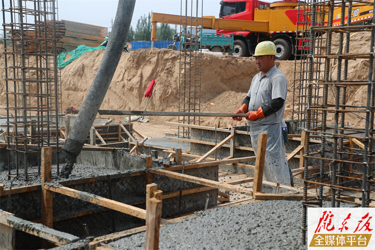 5月27日,記者走進環(huán)縣環(huán)城鎮(zhèn)紅星村(楊巷子組)棚戶區(qū)改造安置項目現(xiàn)場看到,工人身著防護設(shè)備在搭建腳手架,商砼車正在澆筑房屋主體,推土機來回穿梭回填土方……整個工程正在加緊有序推進。