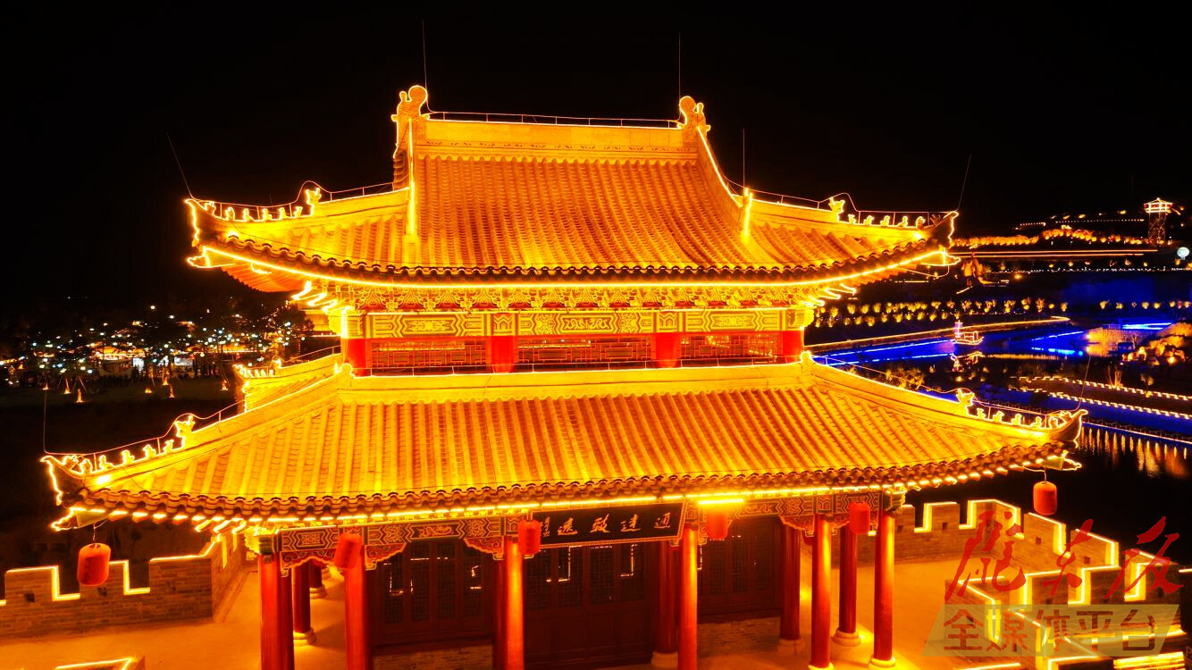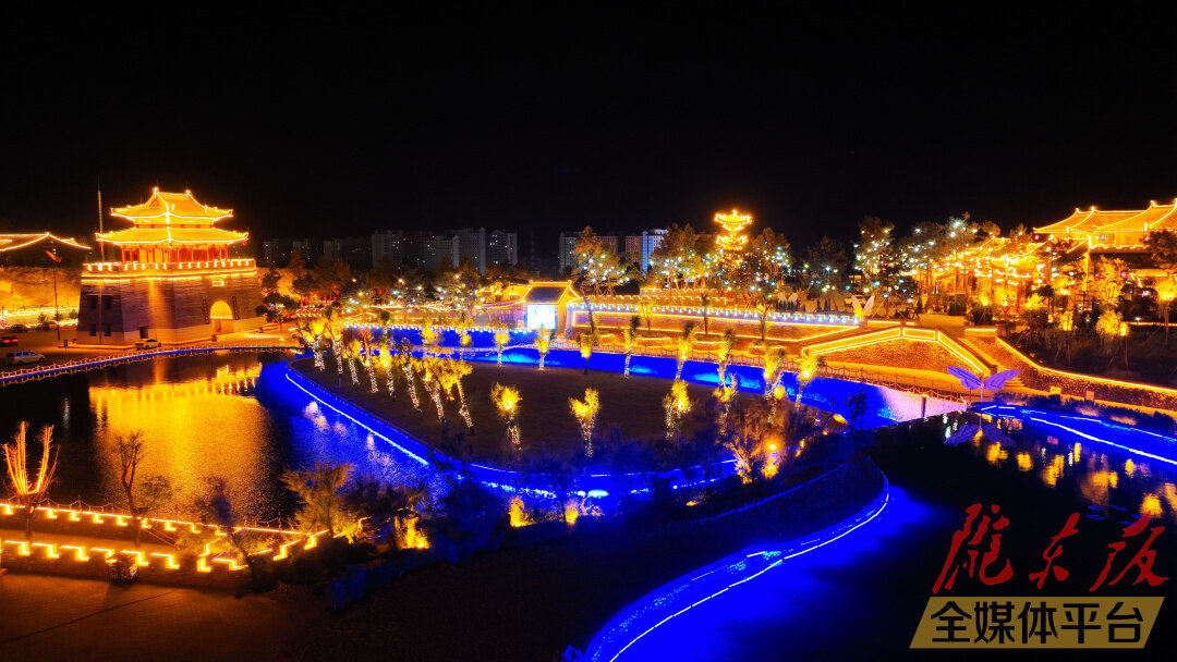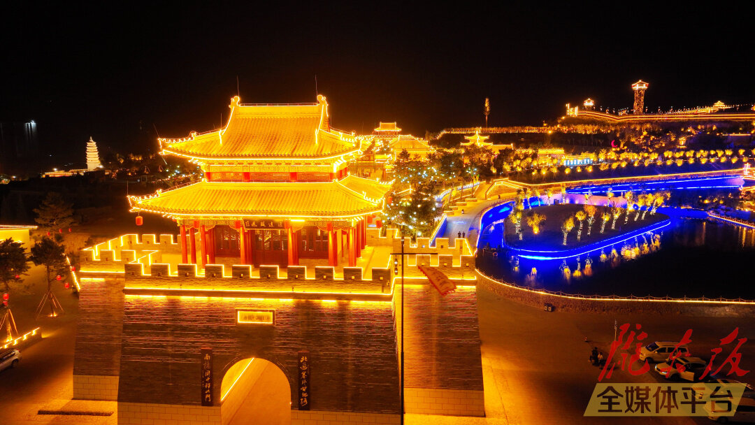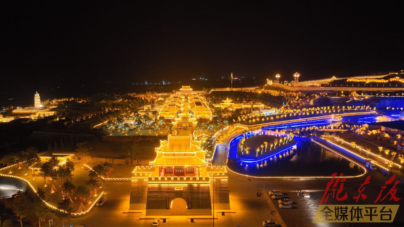 夜幕降臨,華燈初上,環(huán)州故城燈火通明,璀璨輝煌,宛若天宮仙境。6月2日,攝影師用無人機(jī)航拍了環(huán)州故城各個(gè)角度的夜景盛況。