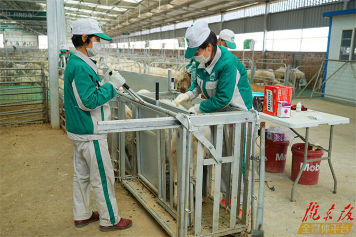 甘肅慶環(huán)肉羊制種有限公司工作人員給羊打疫苗。