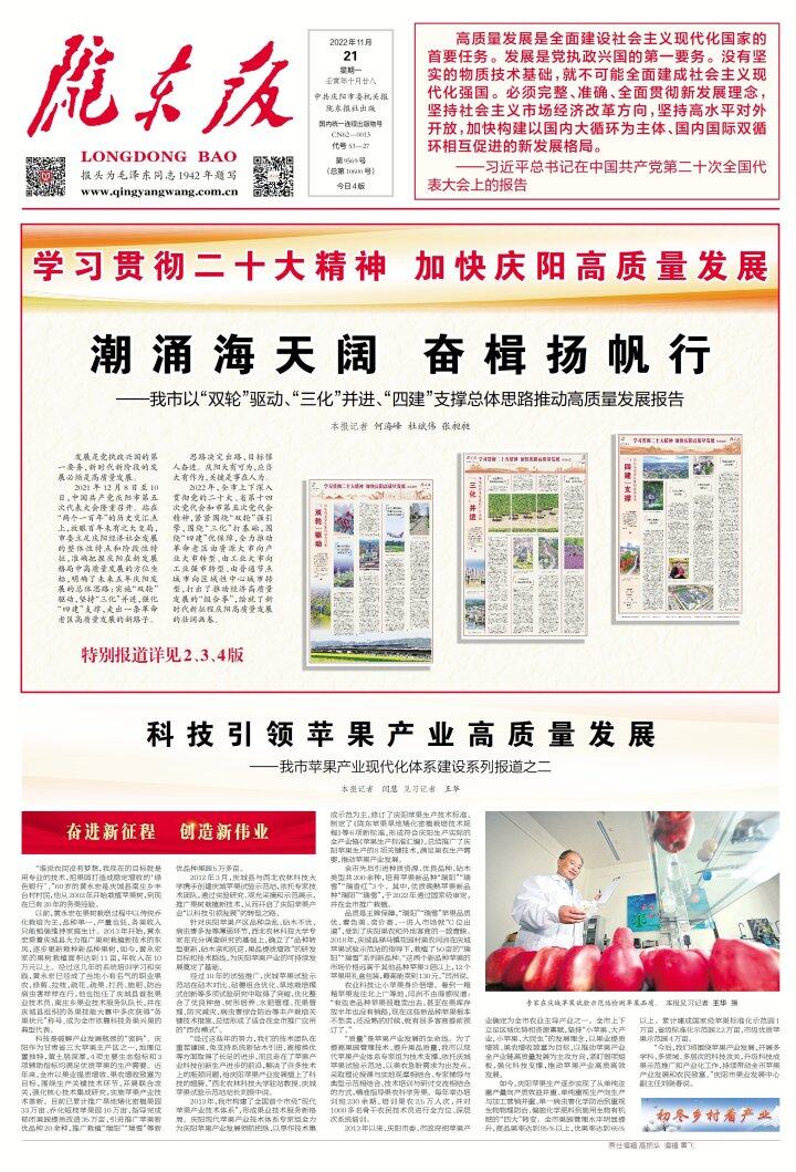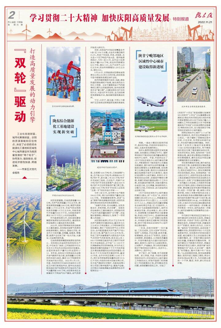 2022年,慶陽市上下深入貫徹黨的二十大、省第十四次黨代會(huì)和市第五次黨代會(huì)精神,緊緊圍繞“雙輪”強(qiáng)引擎,圍繞“三化”打基礎(chǔ),圍繞“四建”優(yōu)保障,全力推動(dòng)革命老區(qū)由資源大市向產(chǎn)業(yè)大市轉(zhuǎn)型、由工業(yè)大市向工業(yè)強(qiáng)市轉(zhuǎn)型、由普通節(jié)點(diǎn)城市向區(qū)域性中心城市轉(zhuǎn)型,打出了推動(dòng)經(jīng)濟(jì)高質(zhì)量發(fā)展的“組合拳”,繪出了新時(shí)代新征程上的新畫卷。