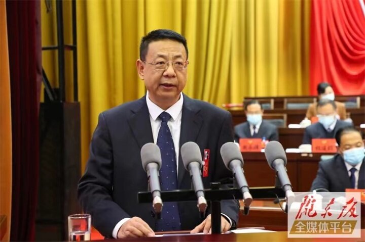 9時(shí),大會(huì)正式開幕,全體起立,高唱國歌,激昂雄壯的旋律響徹全場(chǎng)。隨后,市政協(xié)主席李隆基向大會(huì)報(bào)告工作。