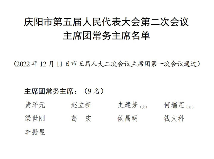 【受權(quán)發(fā)布】慶陽市第五屆人民代表大會(huì)第二次會(huì)議主席團(tuán)常務(wù)主席名單