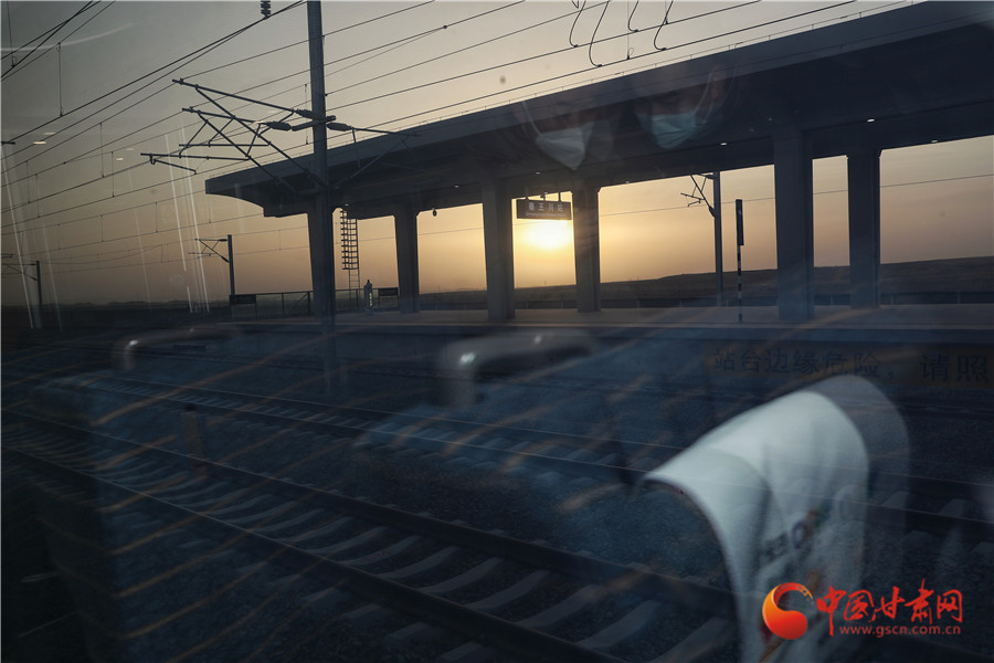 列車駛出秦王川站,沿著開闊的秦王川平穩(wěn)運(yùn)行,窗外的風(fēng)景很快被拋到身后。列車前方到站白銀南站。
