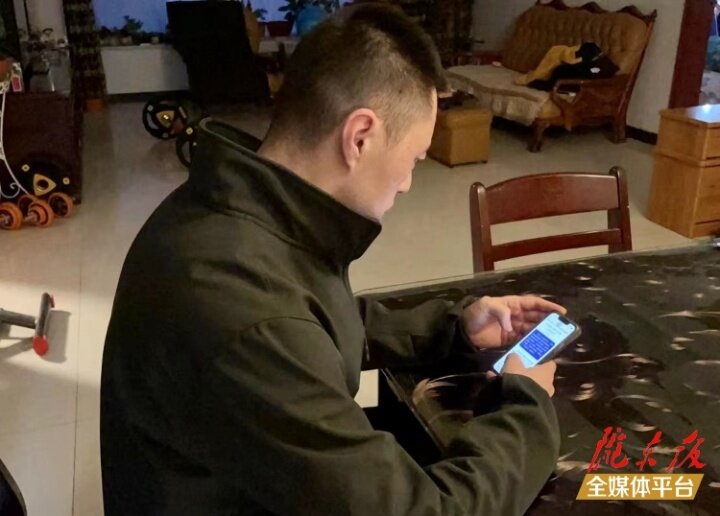 徐騰飛翻閱掌中慶陽新聞客戶端。