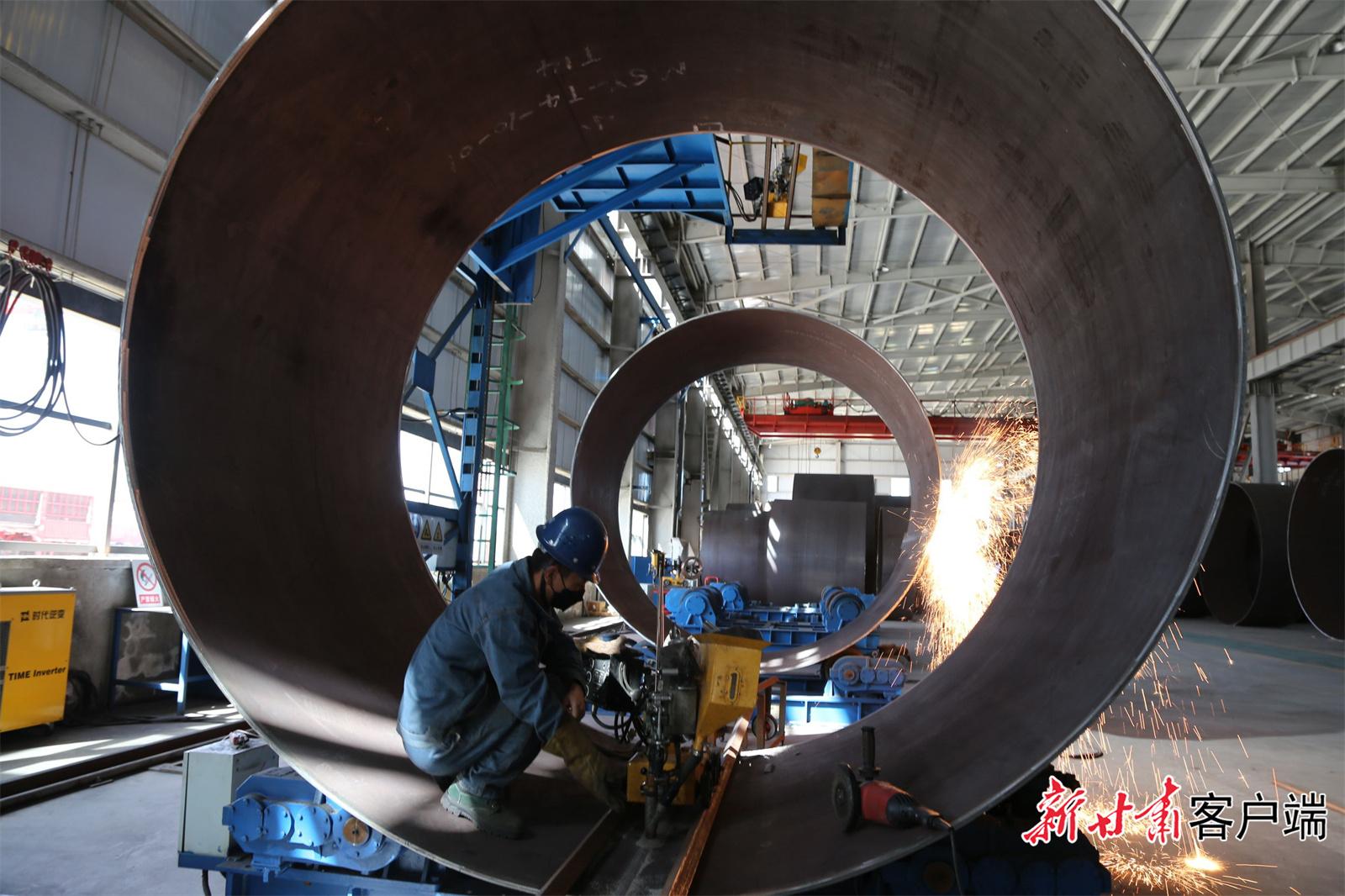 西峰工業(yè)園區(qū)酒鋼西部重工風(fēng)電風(fēng)筒項目生產(chǎn)線。