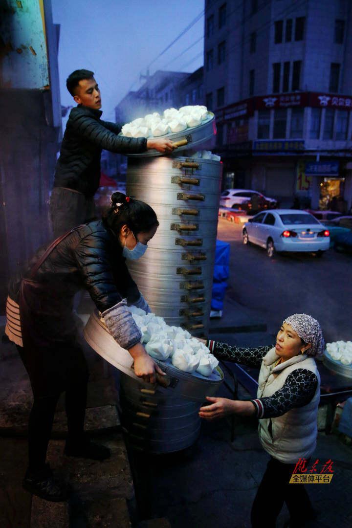 6時,天禾早市一家蒸饃店熱氣騰騰的蒸饃出籠。隴東報全媒體記者 趙彩霞 攝