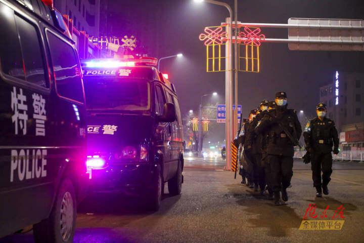 1時,特巡警大隊民輔警在西峰城區(qū)巡邏。隴東報全媒體記者 俄少飛 攝