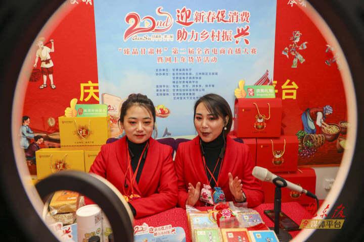22時,電商平臺主播直播推介慶陽農(nóng)特產(chǎn)品。隴東報全媒體記者 俄少飛 攝