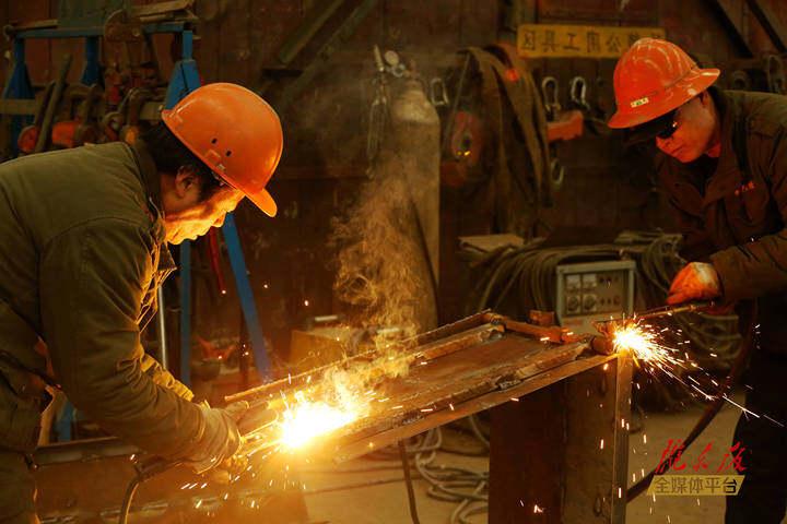 9時,前進機械制造有限公司的工人正在切割紙箱打包機。隴東報全媒體記者 趙彩霞 攝