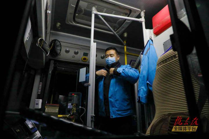 5時,公交車司機在做發(fā)車前的準(zhǔn)備工作。隴東報全媒體記者 俄少飛 攝