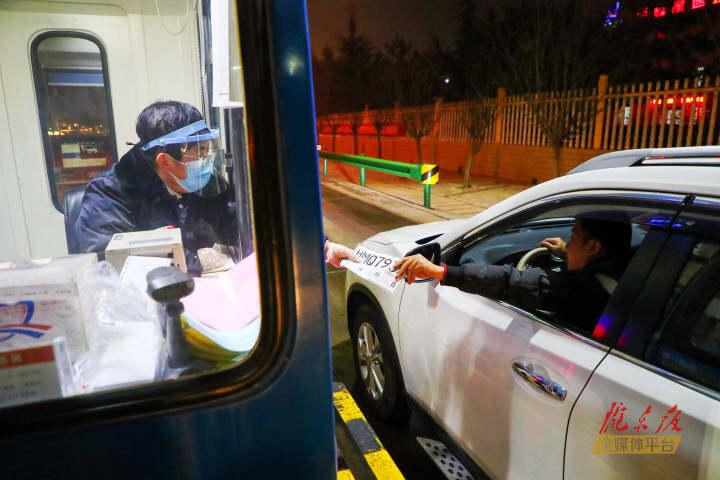 21時,南高速路口工作人員正在登記車牌。隴東報全媒體記者 陳飛 攝