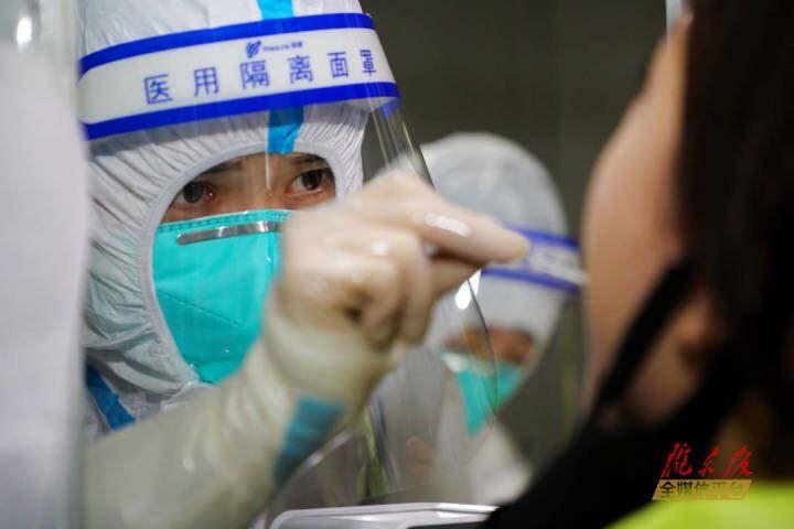 0時,醫(yī)務(wù)人員在為市民做核酸采樣。隴東報全媒體記者 俄少飛 攝