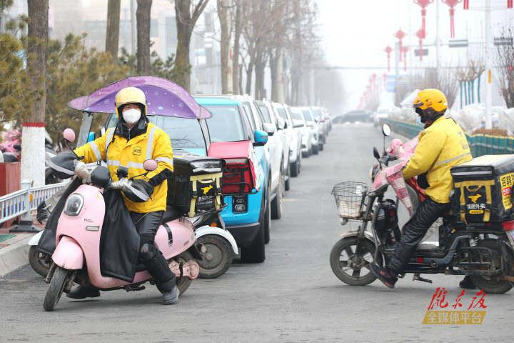 12時,外賣員正派送美食。隴東報全媒體記者 趙彩霞 攝