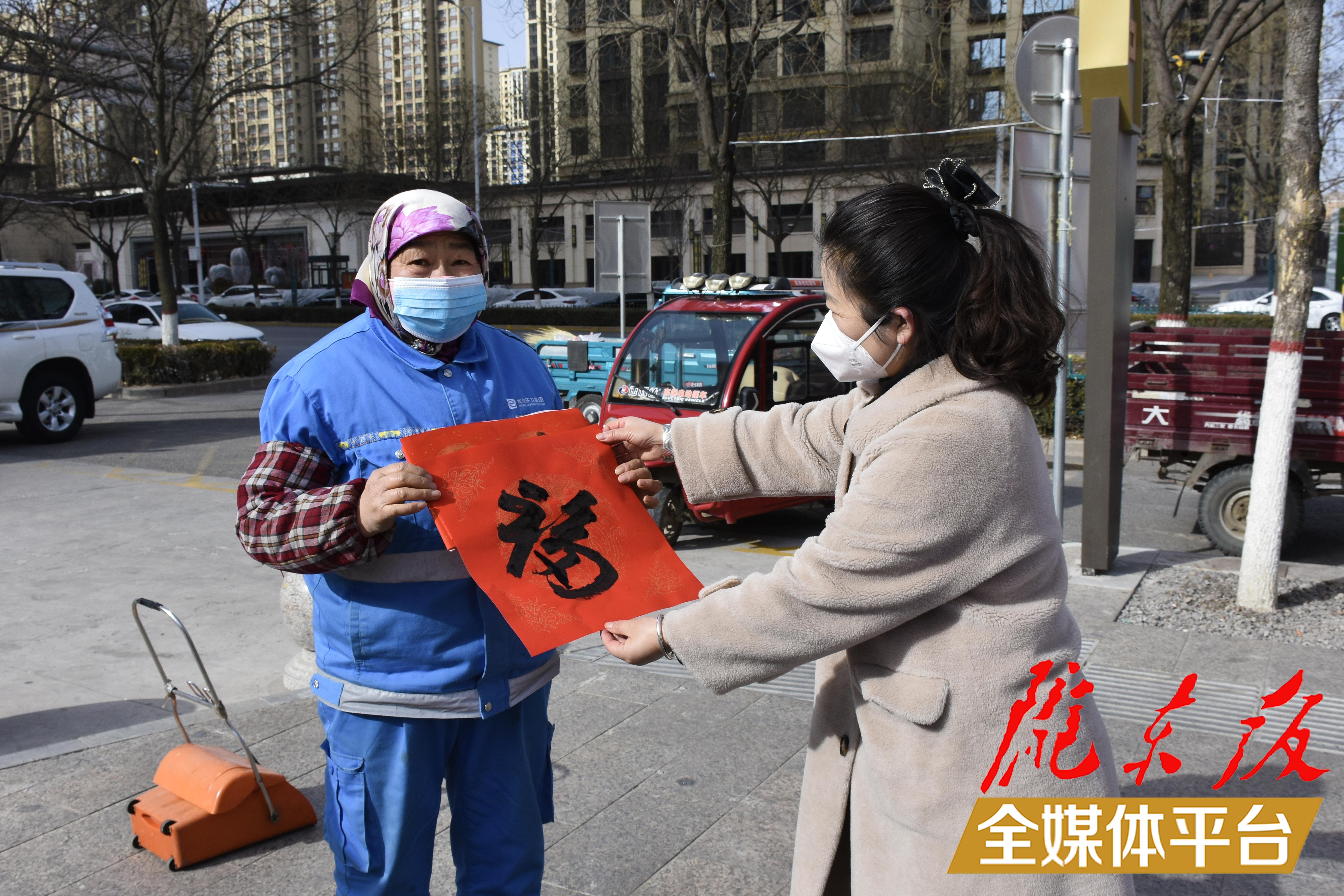 隨后,學生們組成“新春送?!毙》株?,跟隨老師將這些帶著美好祝愿的“福”字和春聯(lián)送到市民手中,并提前送上新春祝?!,F(xiàn)場一位環(huán)衛(wèi)工看著喜慶的“?!弊趾痛郝?lián)喜笑顏開:“孩子們現(xiàn)場書寫的春聯(lián)還帶著墨香,比買來的更有溫度和年味!”