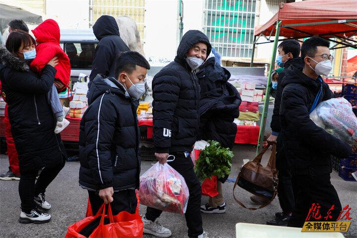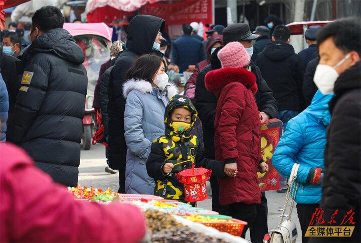 “快過年了,趁著好天氣來趕趕集,順便帶孫子逛逛,給他買點零食,置辦點年貨,沾沾趕大集的熱鬧勁兒。”正在買年貨的何大爺樂呵呵地說。