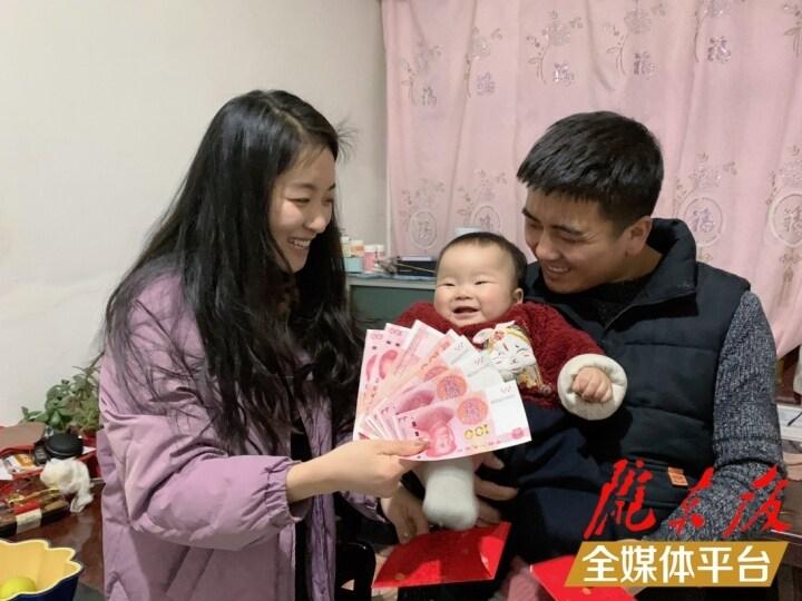 張攀鋒和妻子給女兒七七發(fā)壓歲錢。
