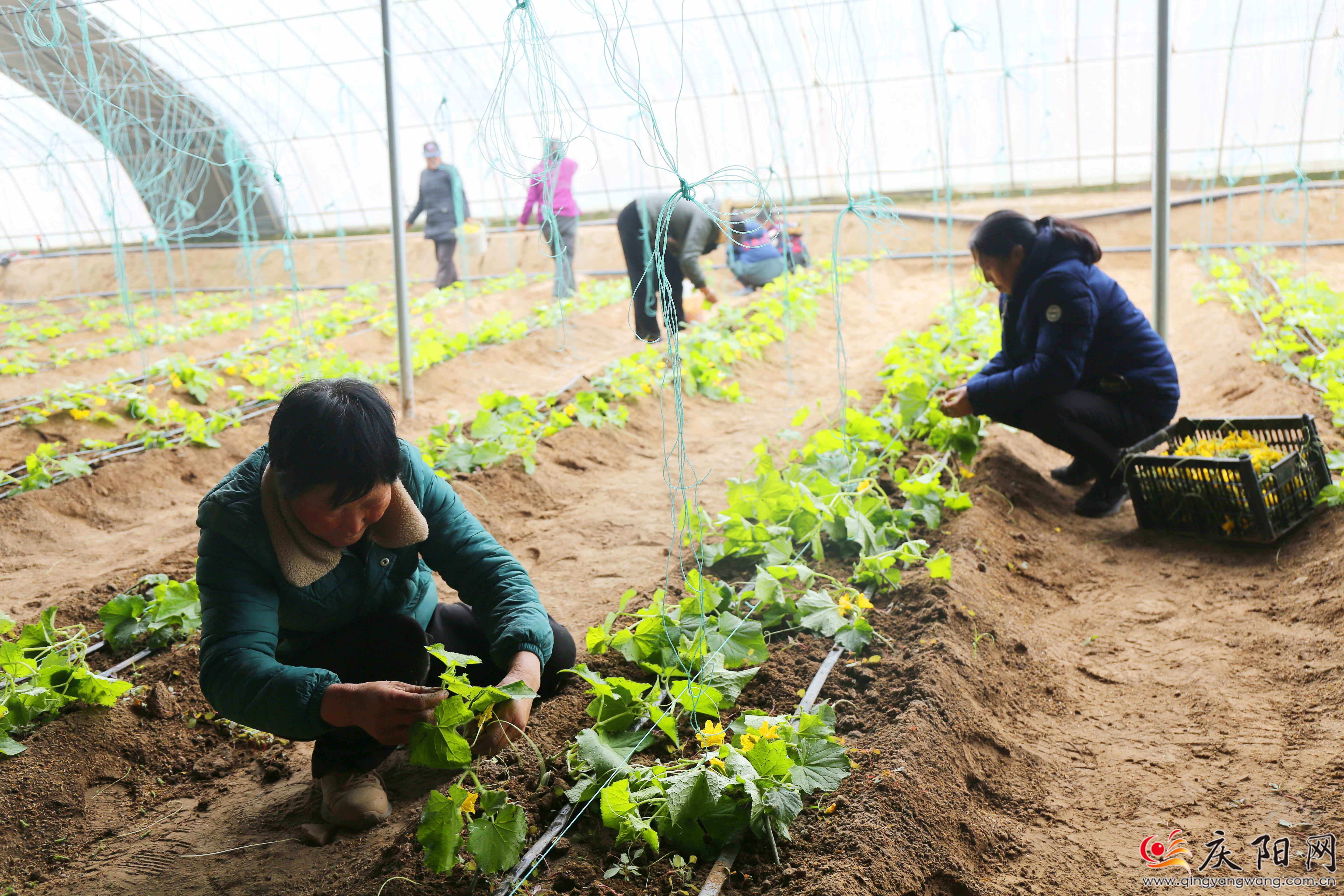 “黃瓜秧苗越健壯,結(jié)瓜的能力就越強(qiáng),掐掉這些花兒、須子是為了保住養(yǎng)分,保證秧苗快速生長(zhǎng),不耽誤黃瓜的坐果率?!比涨?,在合水縣板橋鎮(zhèn)錦坪村的板橋白黃瓜保種產(chǎn)業(yè)園,大棚內(nèi)一排排嫩綠的白黃瓜苗鋪滿地壟,王世衛(wèi)忙著給白黃瓜苗掐花、打蔓。