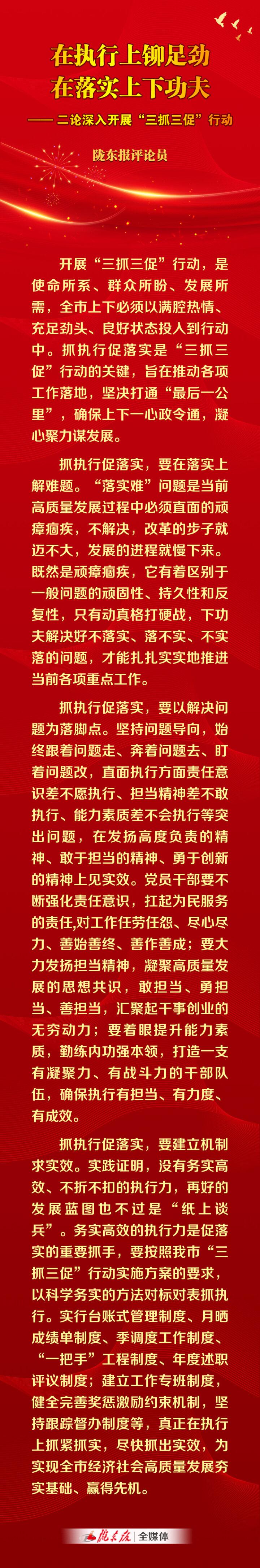 【隴東報評論】在執(zhí)行上鉚足勁 在落實上下功夫—— 二論深入開展“三抓三促”行動