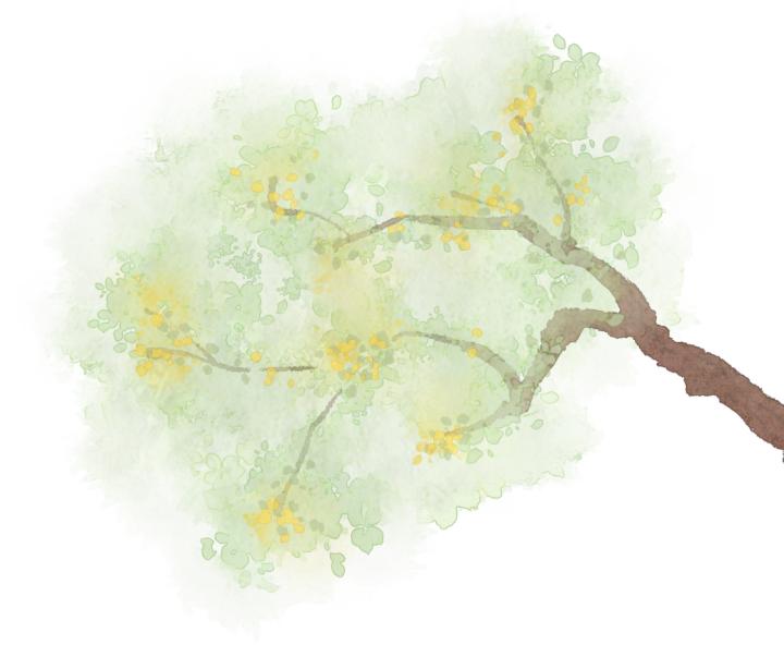 兩水之岸,綠樹間探出杏花的白