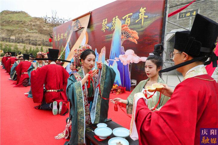 慶陽(yáng)網(wǎng)訊(慶陽(yáng)融媒記者 俄少飛 見(jiàn)習(xí)記者 張萌)5月4日,在“五·四”青年節(jié)之際,“禮樂(lè)環(huán)州·琴瑟百年”中式宋制集體婚禮在環(huán)縣環(huán)州故城舉辦,12對(duì)新人喜結(jié)連理,攜手開(kāi)啟幸?;橐雎贸?。