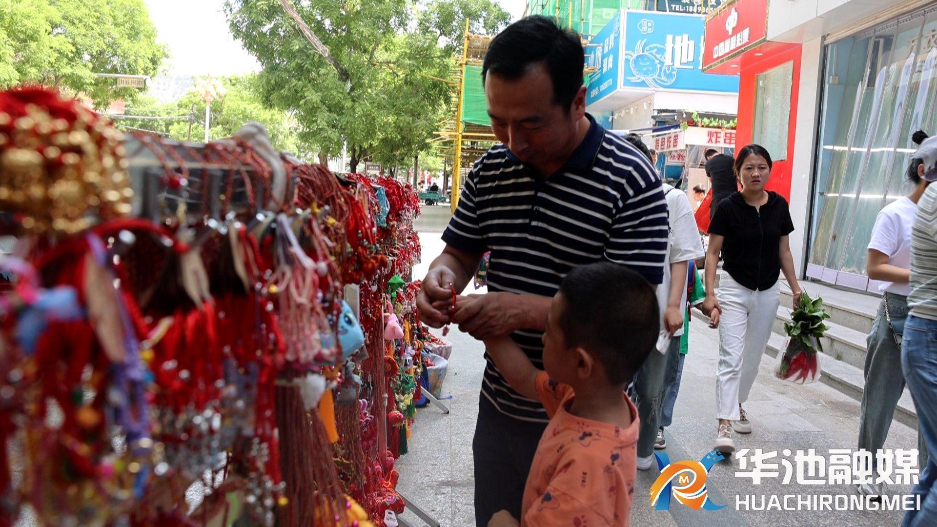 除了吃粽子,端午的習俗還有佩香囊、掛菖蒲、驅(qū)五毒等。在街道攤位,不少商戶集中銷售端午節(jié)民俗飾物,彩葫蘆、五彩繩、香包、艾草等特別受小朋友歡迎,在造型上也頗有新意。小朋友蒲昱欣說:“爸爸今天給我買了一個小花繩,讓我以后健健康康?!保ㄈA池融媒全媒體記者: 李蔚 史艷霞 )