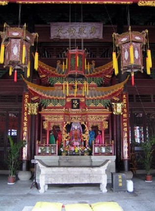 曹娥廟中供奉的曹娥娘娘。這似乎是古代中國的一項傳統(tǒng),一個具備某種美德的人,即便生前并不幸福,死后亦可作為神靈享受人們永遠(yuǎn)的紀(jì)念。曹娥便是因她的孝心,使無數(shù)后人為之感動。也有人認(rèn)為,端午節(jié)便是紀(jì)念孝女曹娥的日子。