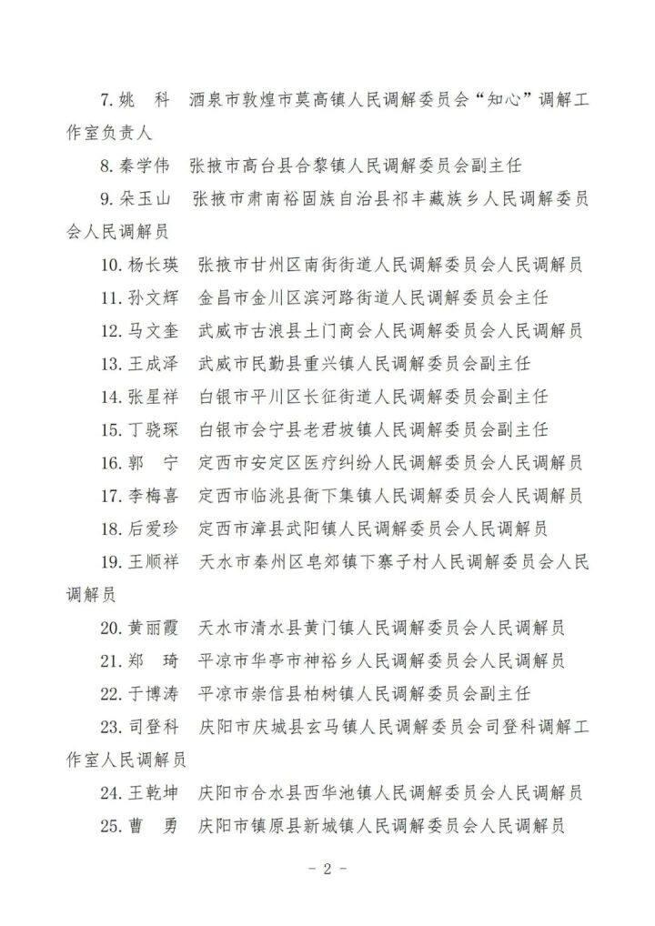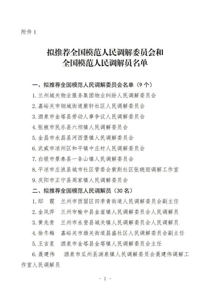 1.擬推薦全國模范人民調(diào)解委員會和全國模范人民調(diào)解員名單