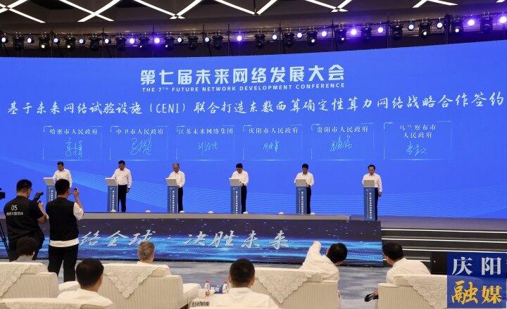 周繼軍說,近年來,南京市深耕“未來網(wǎng)絡”,推動“未來網(wǎng)絡”從概念到技術、從試驗到應用,樹立了從“定義未來”到“實現(xiàn)未來”、支撐網(wǎng)絡強國戰(zhàn)略的典范。慶陽市正在聚力“東數(shù)西算”核心產(chǎn)業(yè)、衍生產(chǎn)業(yè)、賦能產(chǎn)業(yè),加快建設“東數(shù)西算”產(chǎn)業(yè)園區(qū)和千萬千瓦級綠電樞紐中心、十 E 級規(guī)模算力樞紐中心、百業(yè)融合數(shù)算電樞紐中心,全力構建智算、智能、智產(chǎn)數(shù)字新業(yè)態(tài),走出了從“把握未來” 到“決勝未來”、助力數(shù)字強國工程的新路。慶陽市將以本次大會為契機,圍繞夯實數(shù)字經(jīng)濟“新底座”、融入信息“高鐵”、構建城市算力網(wǎng),加強與南京以及全國一體化算力網(wǎng)絡國家樞紐節(jié)點城市間的合作交流,與大家一道共探“未來網(wǎng)絡”新路,共建“東數(shù)西算”樣板。