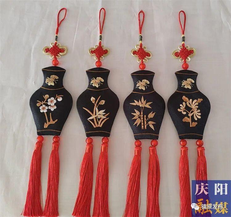 2007年,蔣存琴創(chuàng)作的作品《梅蘭竹菊》在甘肅民間文藝“百合花獎·民間工藝美術(shù)類”評選活動中榮獲銀獎。第一次參加評選就獲得省級獎項,給了她很大信心。從此,她不斷精進刺繡技藝,潛心創(chuàng)作。2011至2013年,她的作品《金魚戲蓮》與《花鳥四條屏》分別獲得中國(慶陽)農(nóng)耕民俗文化展香包刺繡類二等獎。