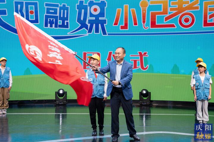 慶陽市融媒體中心黨組書記、主任先朝陽為小記者團授旗。