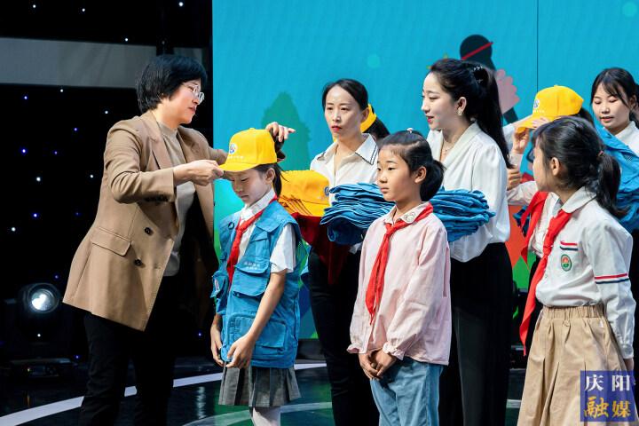 慶陽市融媒體中心記者馬瑩為小記者們領(lǐng)誓。