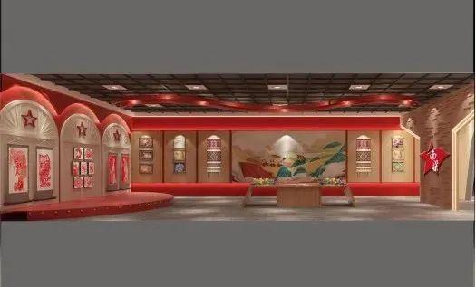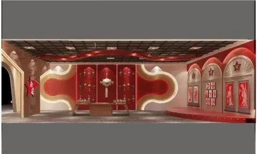 鎮(zhèn)原展廳門廳設(shè)計紅色剪紙鏤空造型