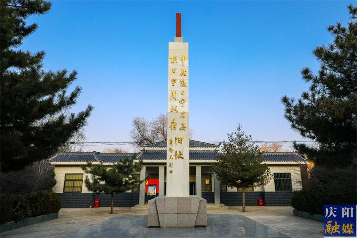 陜甘寧省委、省政府舊址紀(jì)念碑(2021年3月8日攝)。慶陽融媒記者 俄少飛 攝
