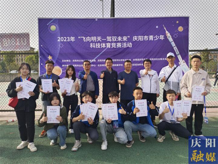 ▲北京師范大學慶陽實驗學校師生參加“飛向明天 駕馭未來”慶陽市青少年科技體育競賽活動合影。