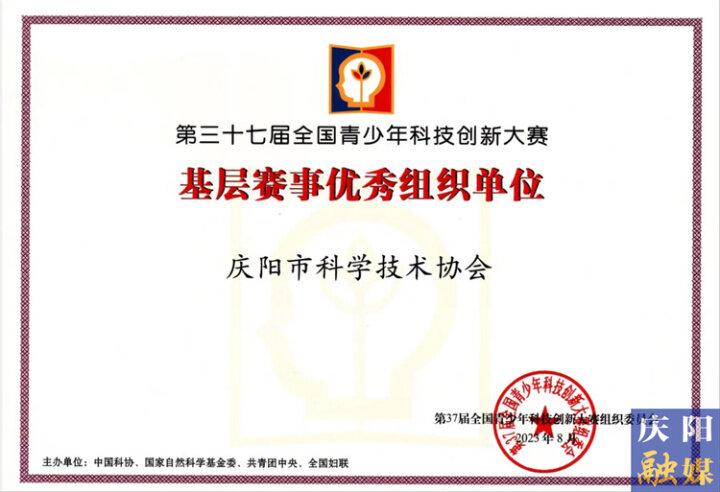 ▲第三十七屆全國青少年科技創(chuàng)新大賽基層賽事優(yōu)秀組織單位獲獎證書。