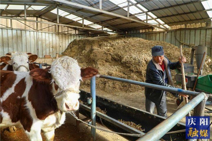 五蛟鎮(zhèn)劉家灣村農(nóng)戶張武榮正在給牛添草料。慶陽融媒記者 俄少飛 攝
