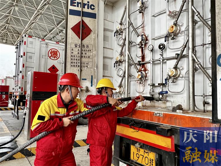▲在永慶天然氣集團(tuán)慶城公司CNG母站,工作人員正在進(jìn)行CNG槽車充裝。