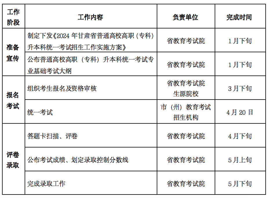 2024年甘肅省普通高校高職(??疲┥究平y(tǒng)一考試招生工作進(jìn)程表