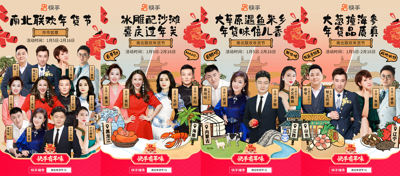 為了帶老鐵們趕記憶中的大集,尋人間煙火氣,快手本次云上廟會(huì)就將直擊南北特色年貨現(xiàn)場(chǎng),看南北年貨誰(shuí)更強(qiáng)。1月5日-2月16日,快手與6省媒體強(qiáng)強(qiáng)聯(lián)合,并聯(lián)動(dòng)主持人、達(dá)人等,以南北兩省配對(duì)的形式推出6場(chǎng)重點(diǎn)電商直播以及超50場(chǎng)電商帶貨直播,宣傳地方特色、年貨好物,體驗(yàn)?zāi)媳辈町惣亦l(xiāng)年俗。