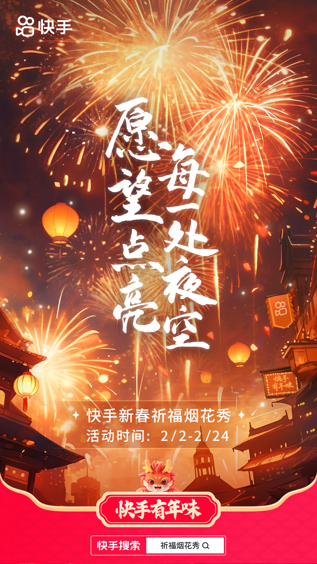與此同時(shí),在中華民族的漫漫歷史長(zhǎng)河中,煙花毫無疑問是一個(gè)明麗絢爛的文化符號(hào)。同春聯(lián)、年畫、燈籠一樣,是人們春節(jié)記憶中最難忘的年味元素之一?!按撼谴合鼰o價(jià),照星橋火樹銀花”,這個(gè)春節(jié),快手聯(lián)動(dòng)多個(gè)區(qū)域媒體,將以直播的形式帶大家走進(jìn)中國(guó)花炮之鄉(xiāng)瀏陽(yáng)、山城重慶、廣東廣州、河南鄭州等地,在小年、除夕、元宵節(jié)節(jié)點(diǎn),帶大家飽覽絢麗多彩的煙花秀,共享活力升騰的斑斕畫卷,期間,還將有花式無人機(jī)表演、篝火晚會(huì)、非遺打鐵花、燈光秀等特色節(jié)目,伴著齊放的煙花一同呈現(xiàn)在大家眼前。